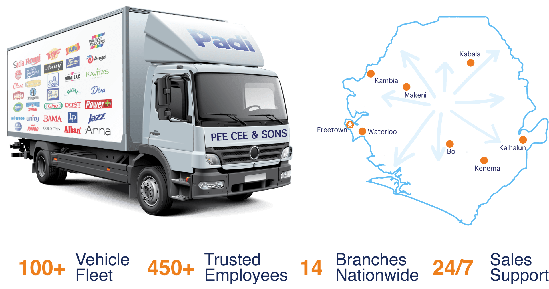 Established for 50+ years, Pee Cee & Sons (PCS) is one of the largest distribution and marketing companies for food products in Sierra Leone, Liberia and Guinea. We represent world-renowned brands for a variety of frozen, chilled, dry food and non-food products. We cater to wholesale, food service and retail sectors.
